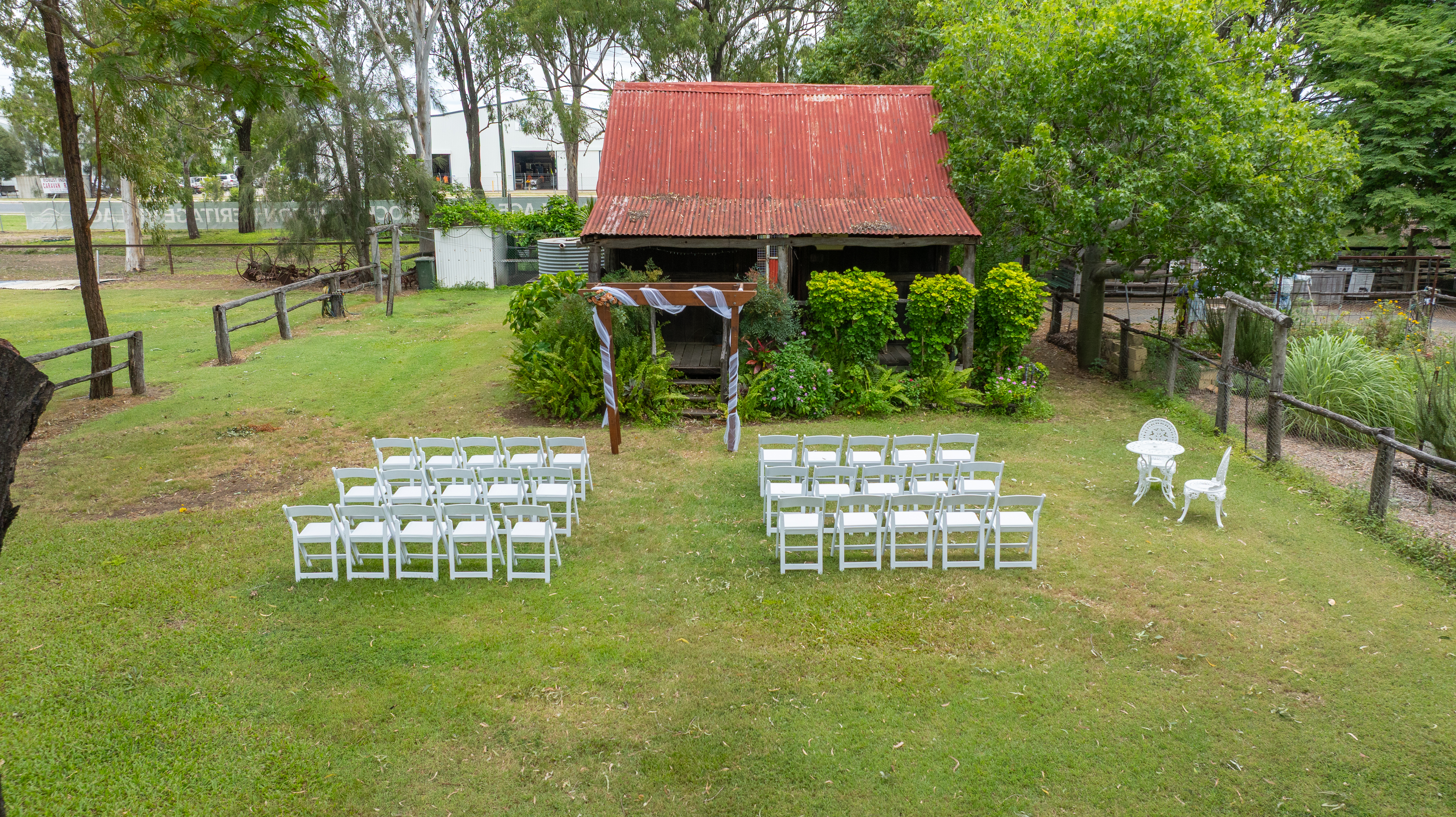 The Rockhampton Heritage Village offers a selection of Wedding ceremony venues throughout the Heritage Village grounds, with up to 6 different locations available. Enclosed are photos of some of our wedding ceremony’s locations and Australian Shearing Shed reception table designs and layouts.
